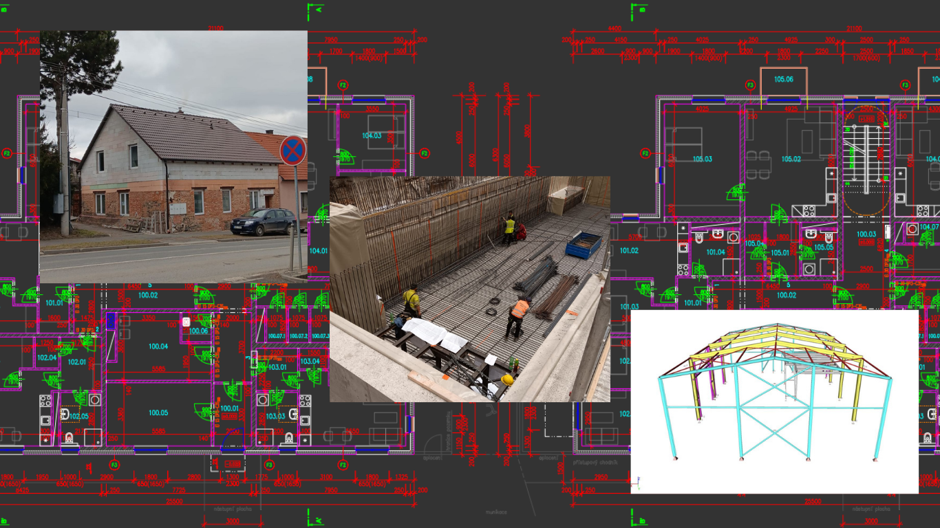 Při zpracování projektů si zakládáme na přesnost detailů a využívání inovativních konstrukcí a postupů. Naší doménou je vypracování projektové dokumentace ve všech úrovních (DSP, DPS, RDS) a provádění statických výpočtů a armování pozemních staveb i průmyslových základů.